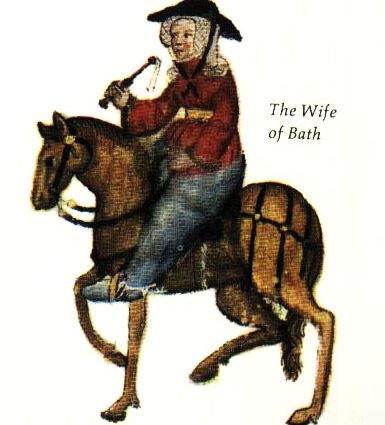 At the very beginning, the Wife establishes a pattern of opposition between experience and ‘auctoritee’ (authority). The Wife does not begin with any modest reservation about her ability to tell a good tale or her concern to please the listeners. (By contrast, the courteous Frankeleyn (Franklin) apologises in the short prologue to his tale for his plain speech. He then delivers a rather elegant tale about a marriage threatened by a rash promise.) Instead she launches in with an abrupt direct statement about her competence to speak about marriage. The Wife claims that ‘wo’ in marriage is her main theme and it is not until we have listened to more of her prologue that we come to understand the irony of the use of the word ‘wo’. Initially we might well assume that the ‘wo’ is mainly the pain that she has endured, but we come to learn that most of the ‘wo’ is the pain that she has inflicted. The Wife claims to have been married at twelve, which was the youngest age at which a female could make a valid marriage. She has been legitimately married five times.